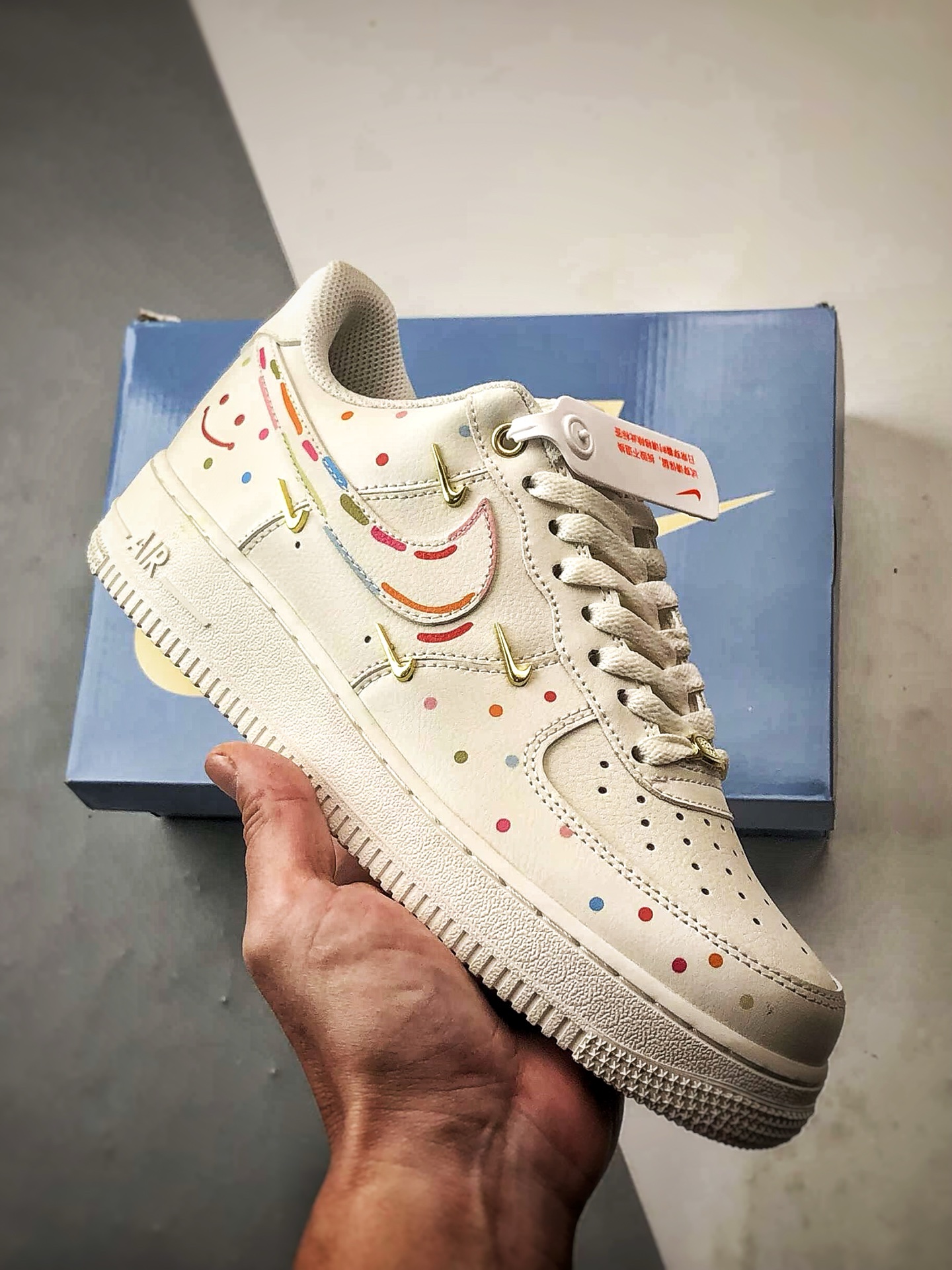 未经允许不得转载:High Quatity Cheap Brand wholesale wholesaler seller Clothes Bags handbags Sneakers Top Fashion Clothing Shoes from China Factory Chinese suppliers best Quality Beautiful Price » 定制球鞋Air Force 1 Low 波点笑脸 米金四小钩 经典休闲运动板鞋 ZH0316-151
