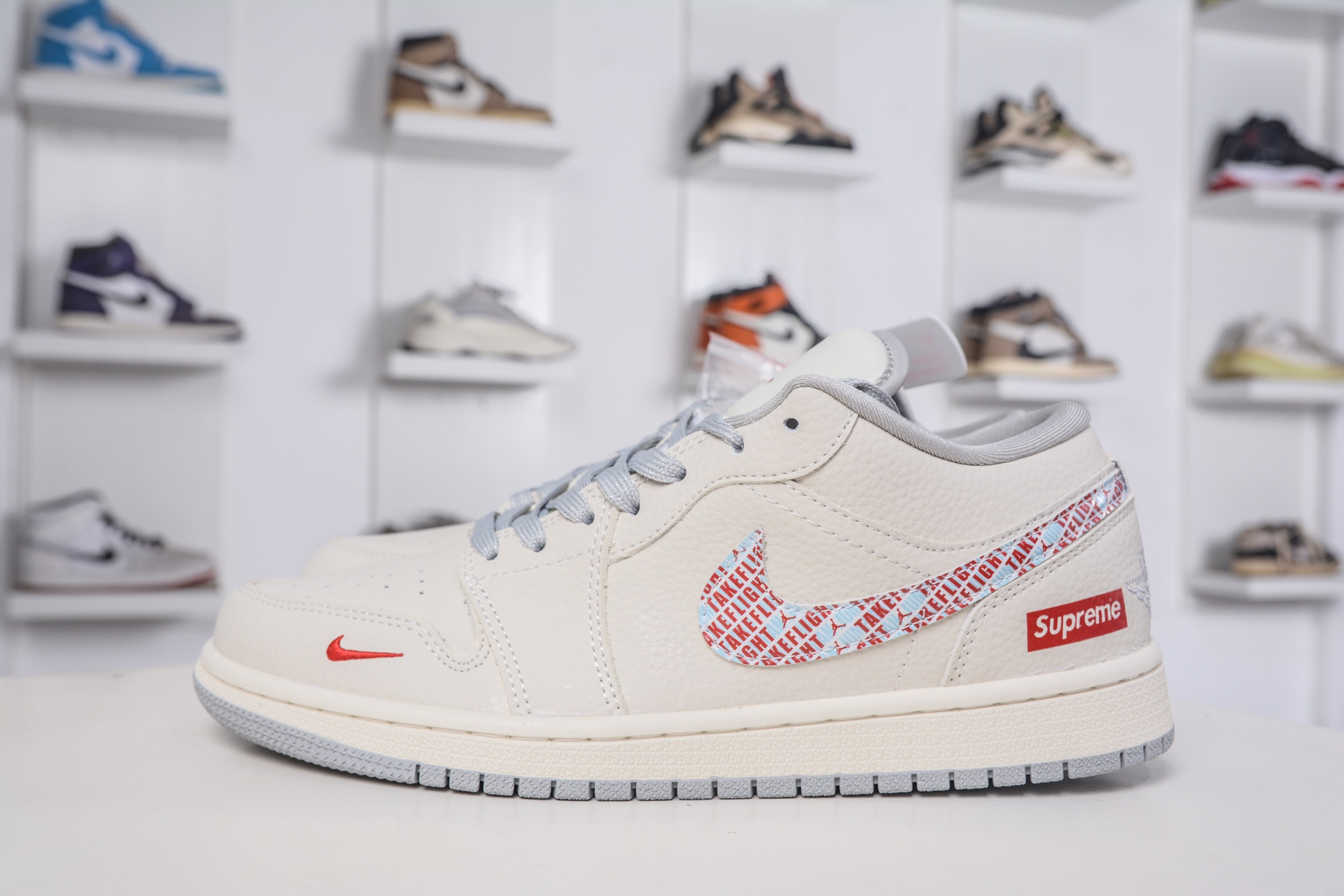 未经允许不得转载:High Quatity Cheap Brand wholesale wholesaler seller Clothes Bags handbags Sneakers Top Fashion Clothing Shoes from China Factory Chinese suppliers best Quality Beautiful Price » Air Jordan 1 Retro Low x Supreme SUP联名-米白彩勾 LR8888-014