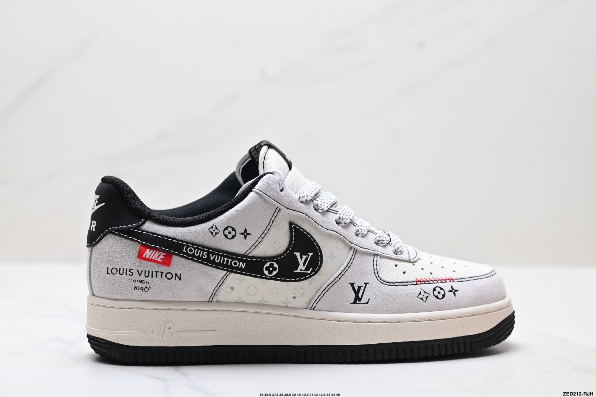 高端定制Nike Air Force 1 ’07 Low “路易威登LV联名— 白红帆布印花” 高端定制 低帮休闲板鞋 XL1979-109