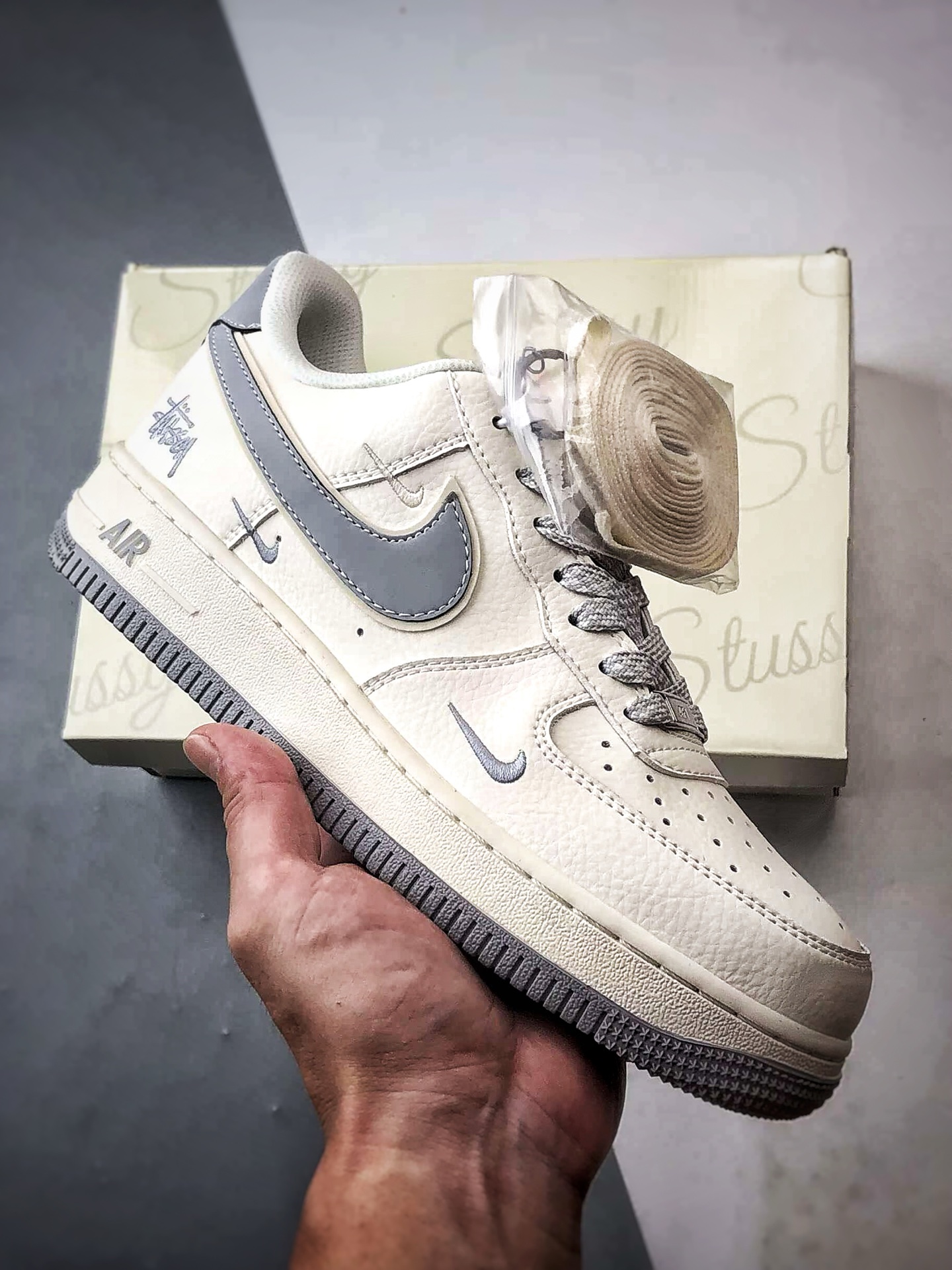 Stussy x Air Force 1 Low 米白灰三小钩 CS5288-040