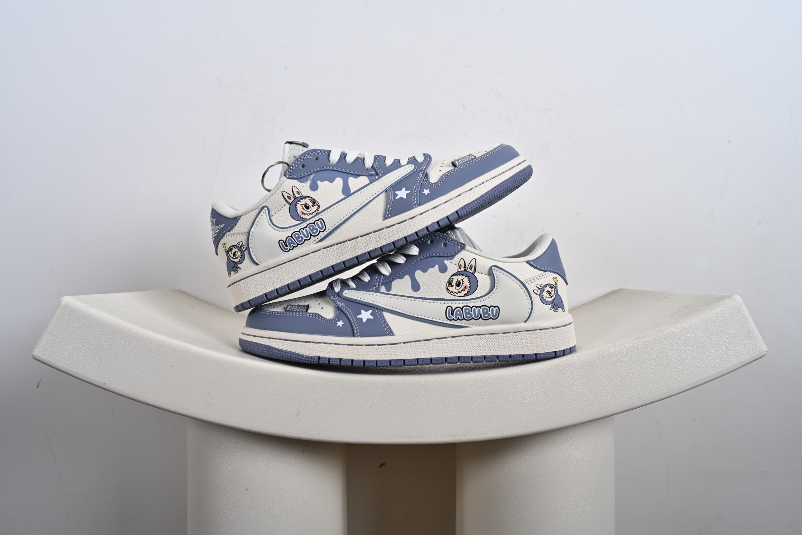 Labubu x Travis Scott x Air Jordan 1 Low 拉布布 x AJ1 低帮 梦幻蓝白倒钩 AJ1 乔丹1代 aj1 乔1 低邦倒勾联名 乔丹篮球鞋系列 DZ5899-018